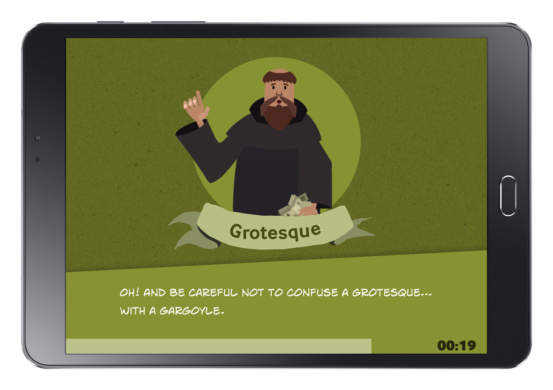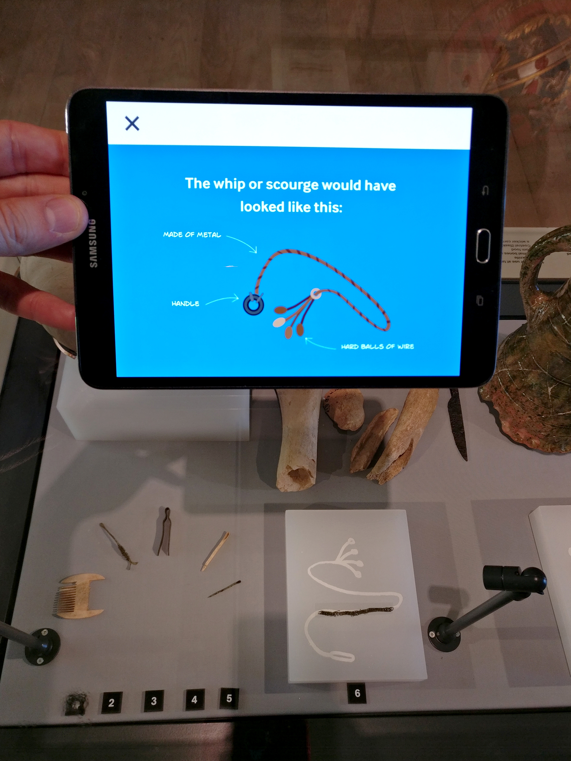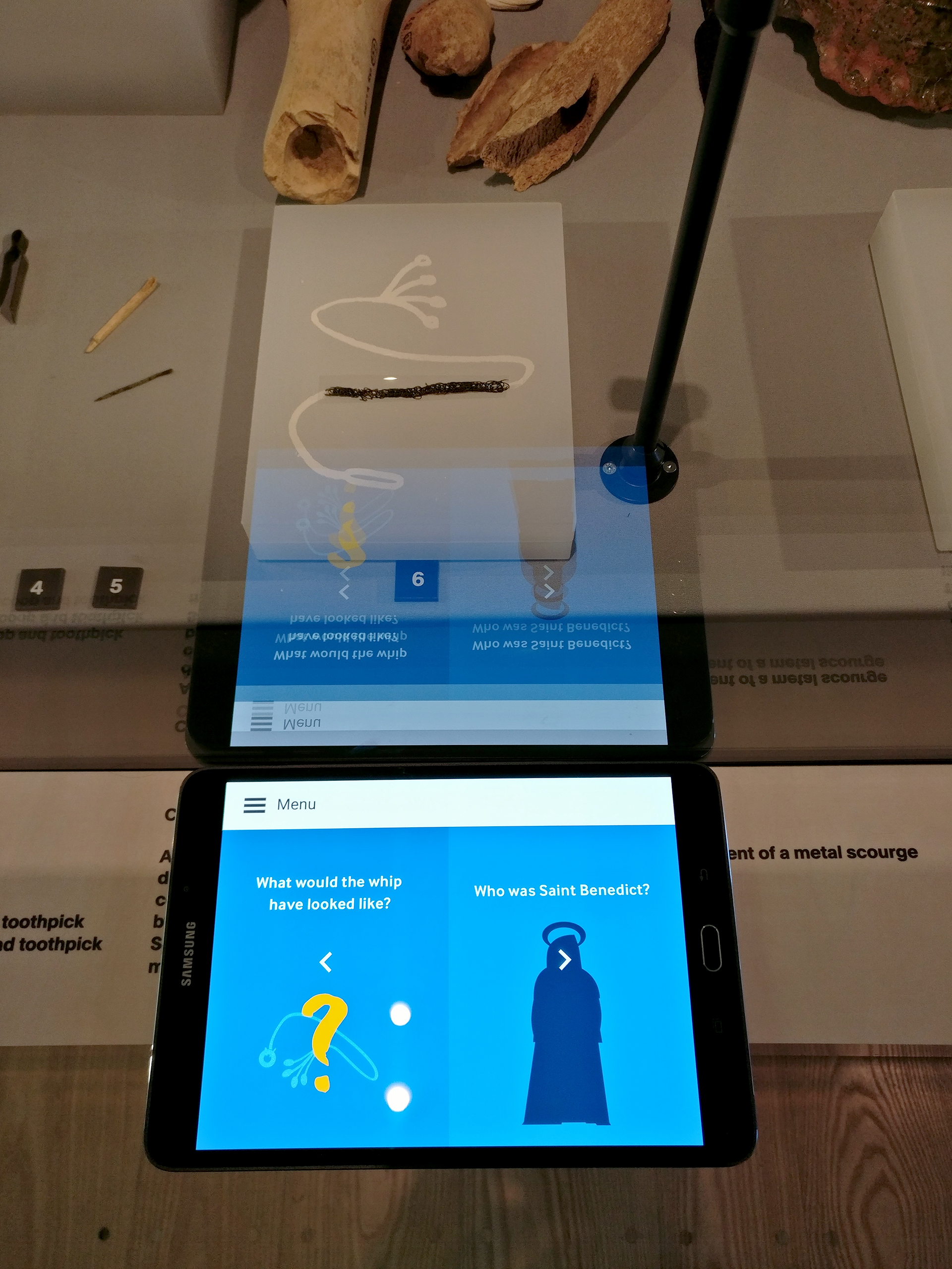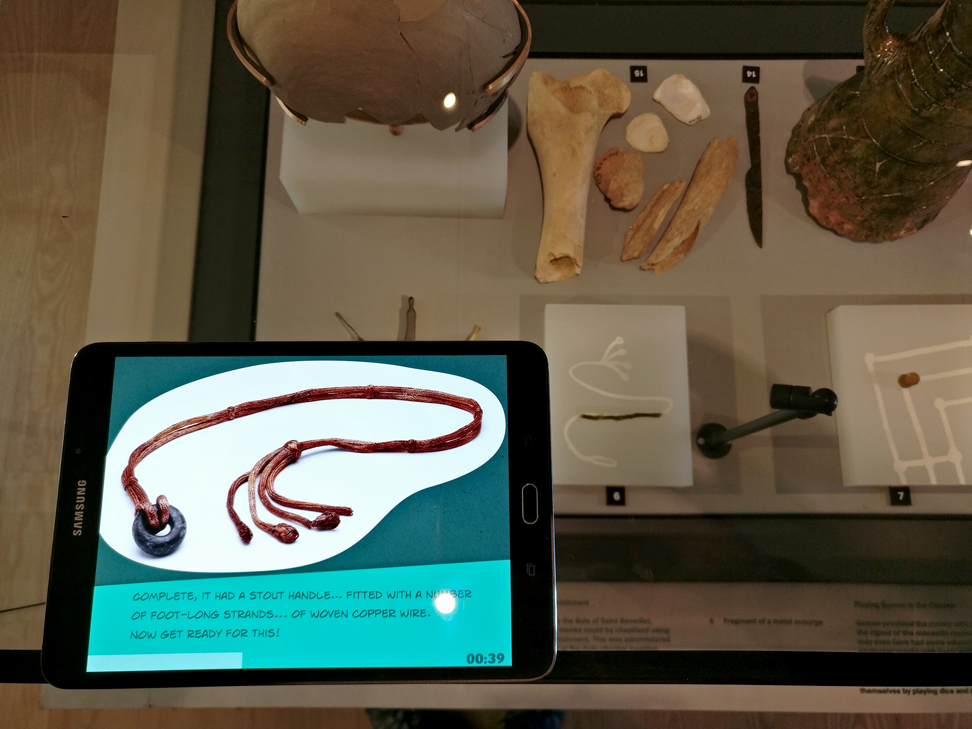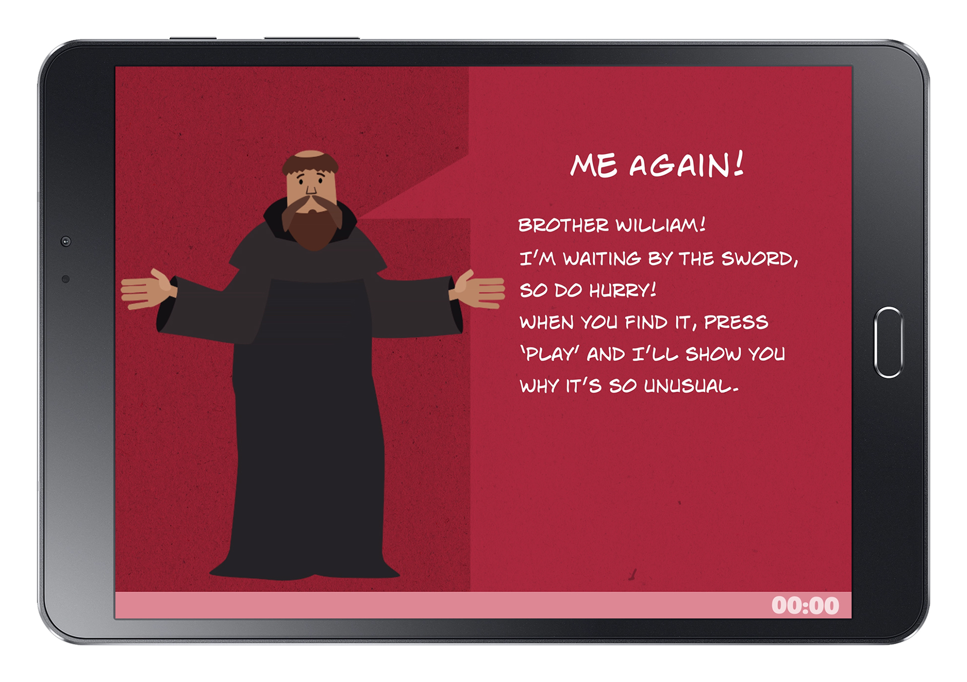A major part of the exhibition is a mobile app children's tour that encourages young visitors to explore and find specific objects, at which point the app reveals more information and stories about the objects. The app is led by an illustrated, animated and narrated monk called Brother William.