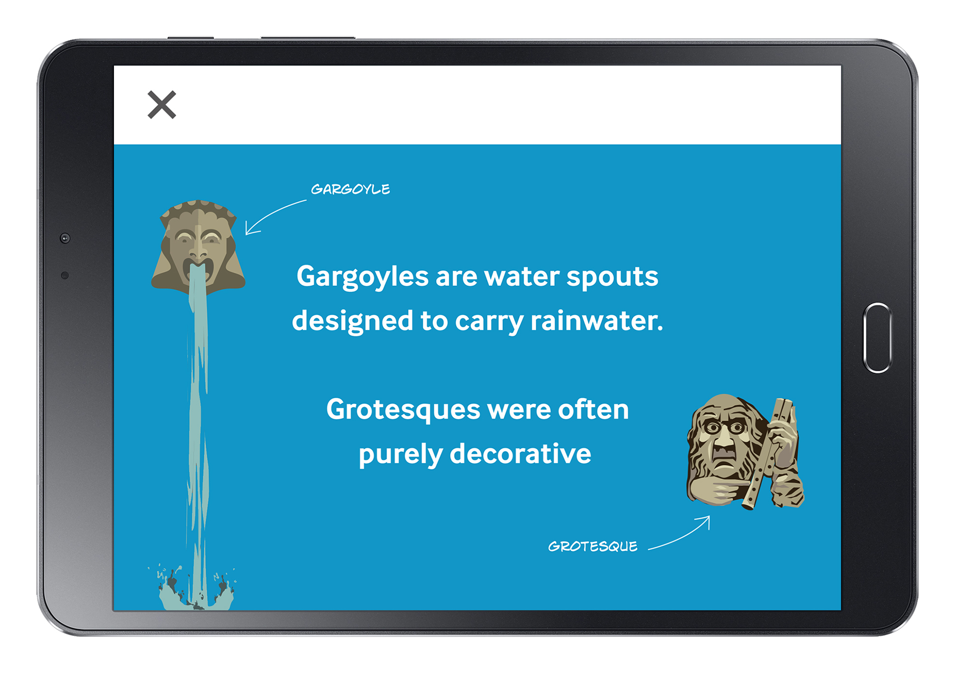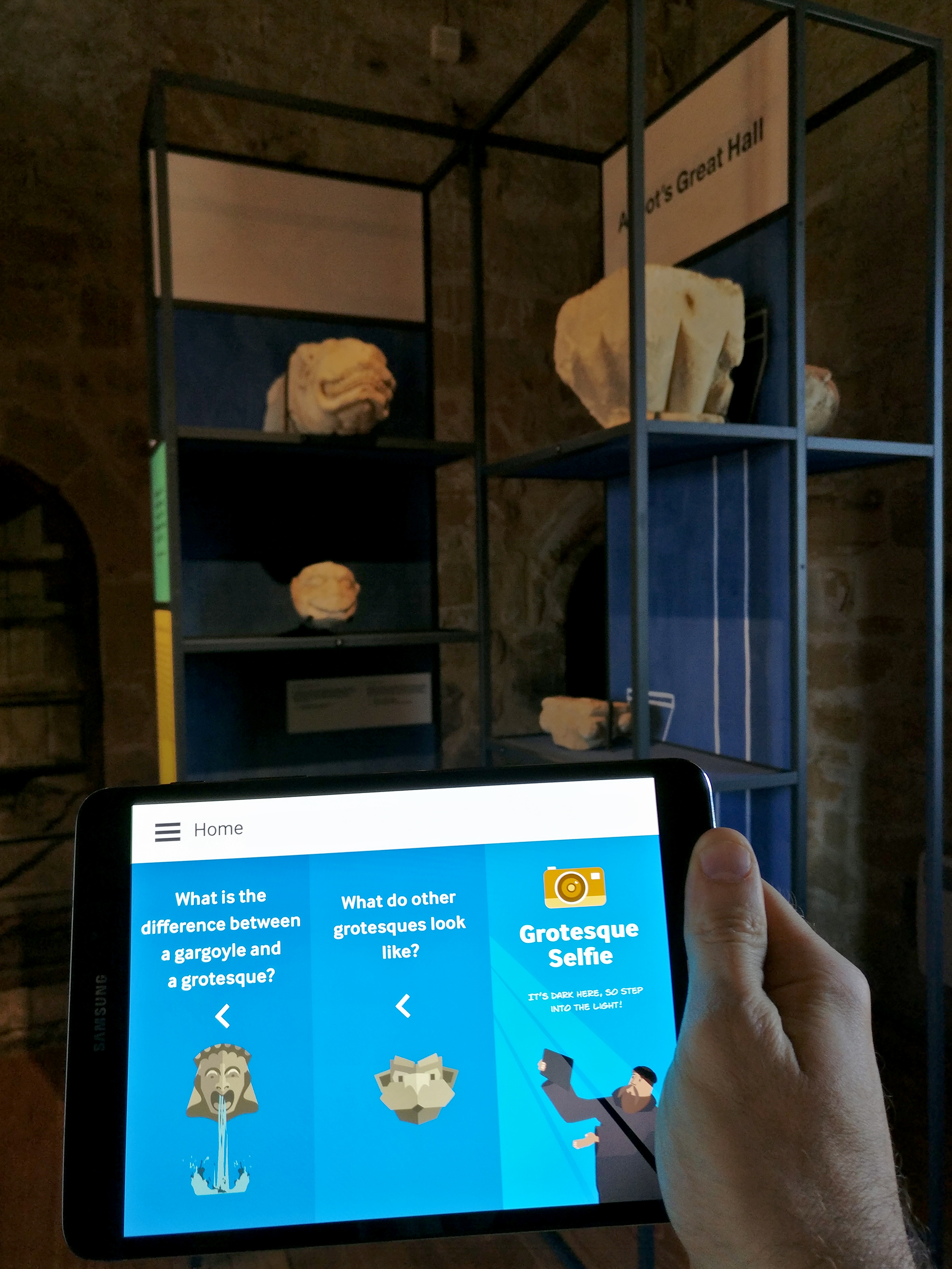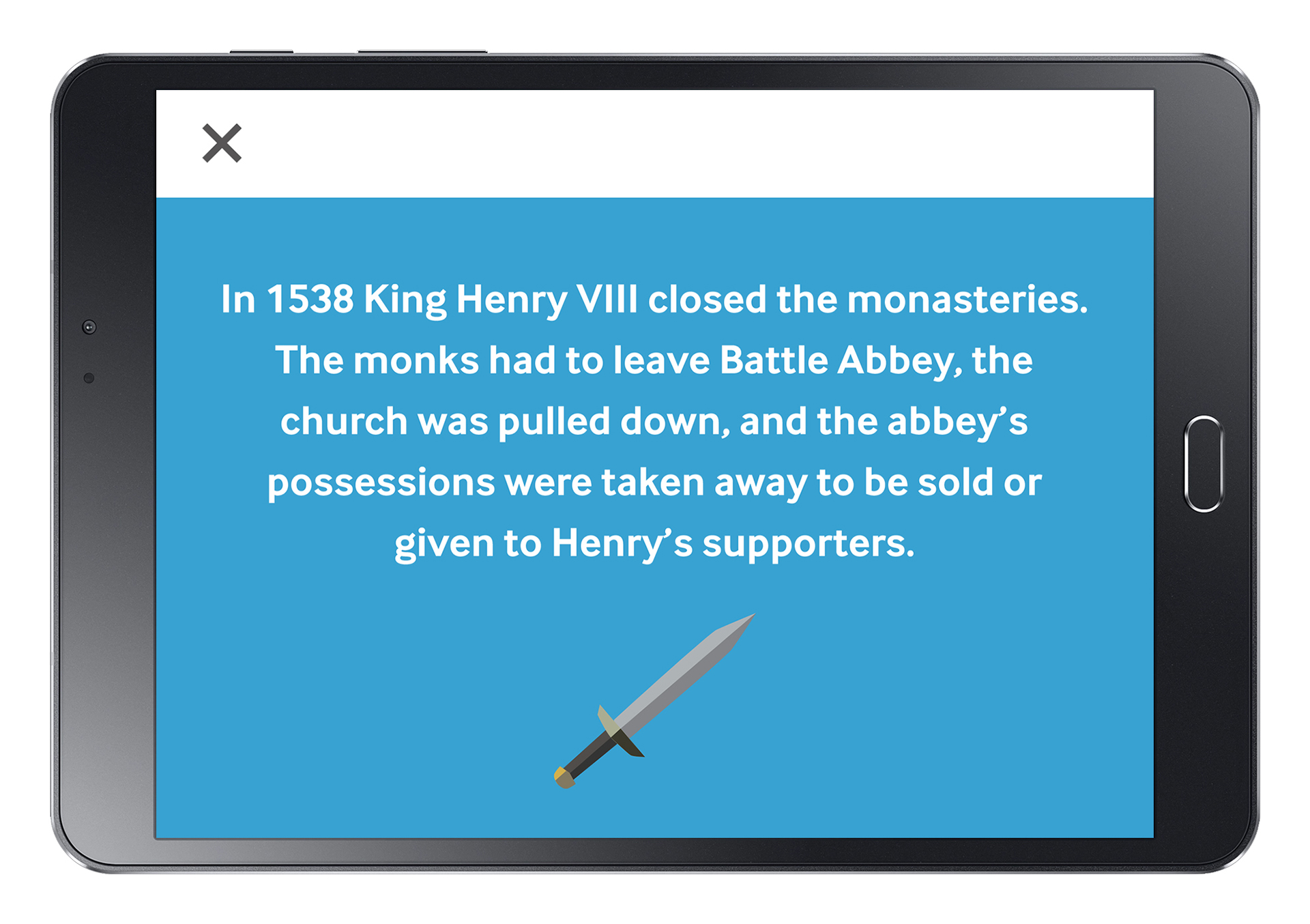 The app is not available to the public through an app store, but was developed to run on a set of 20 Android tablets owned and operated by the abbey. The tablets are handed out to visitors at the start of their visit and collected from them before they leave.