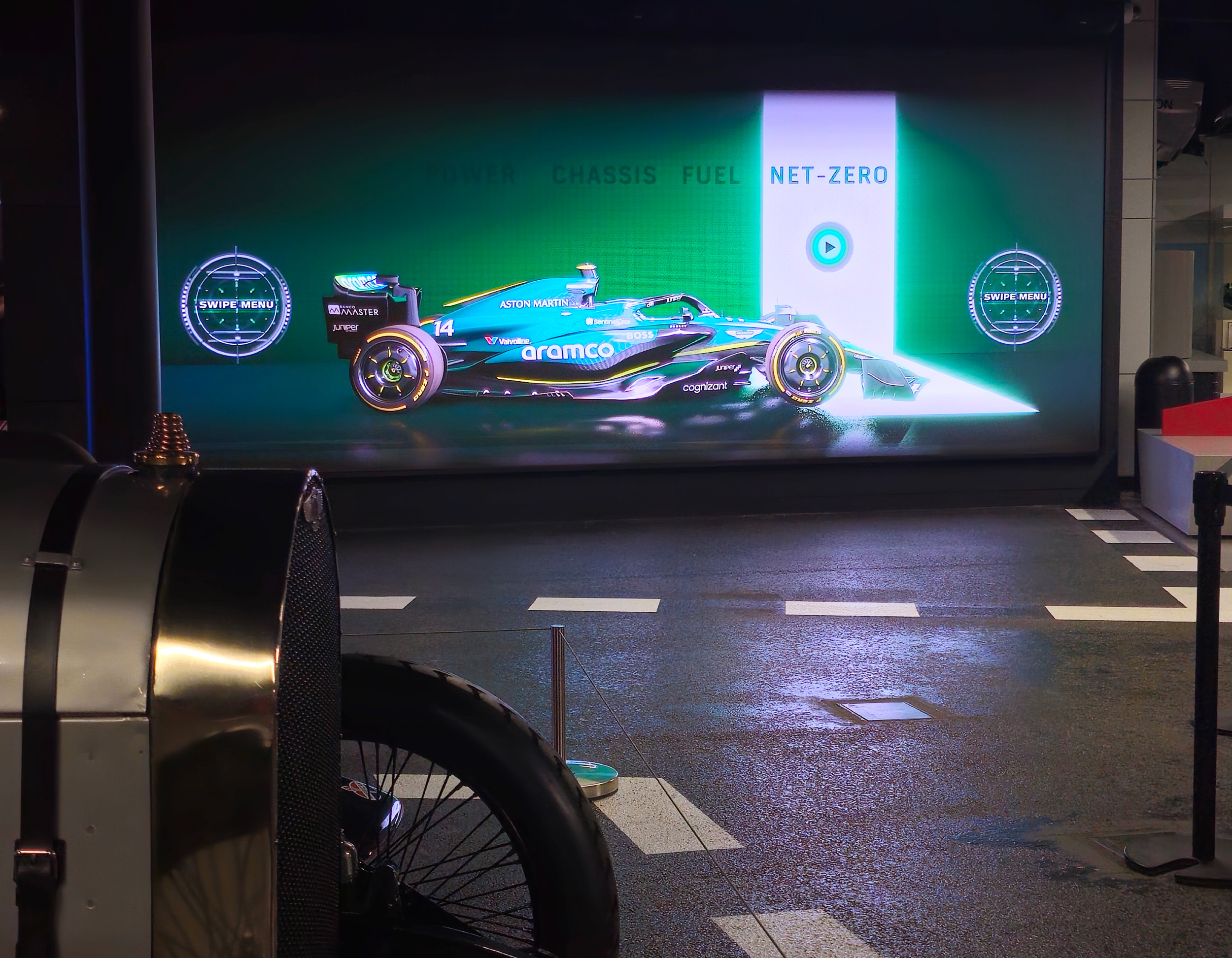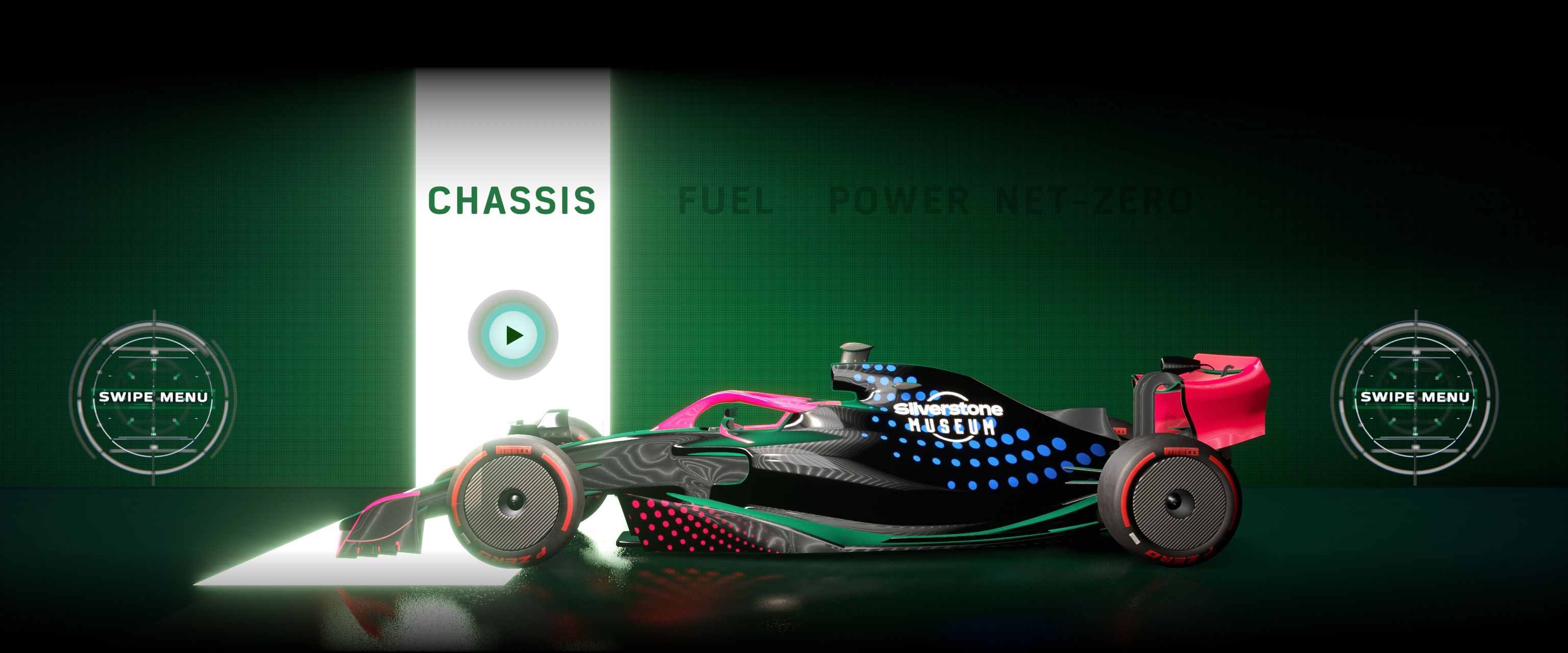 Launched in autumn 2024, I developed a large scale interactive LED touch wall for Silverstone Museum that showcases some of the future technologies being used in Formula One. The experience is designed for single user interaction, and starts with a looping screensaver video that encourages visitors to swipe the wall to begin.
