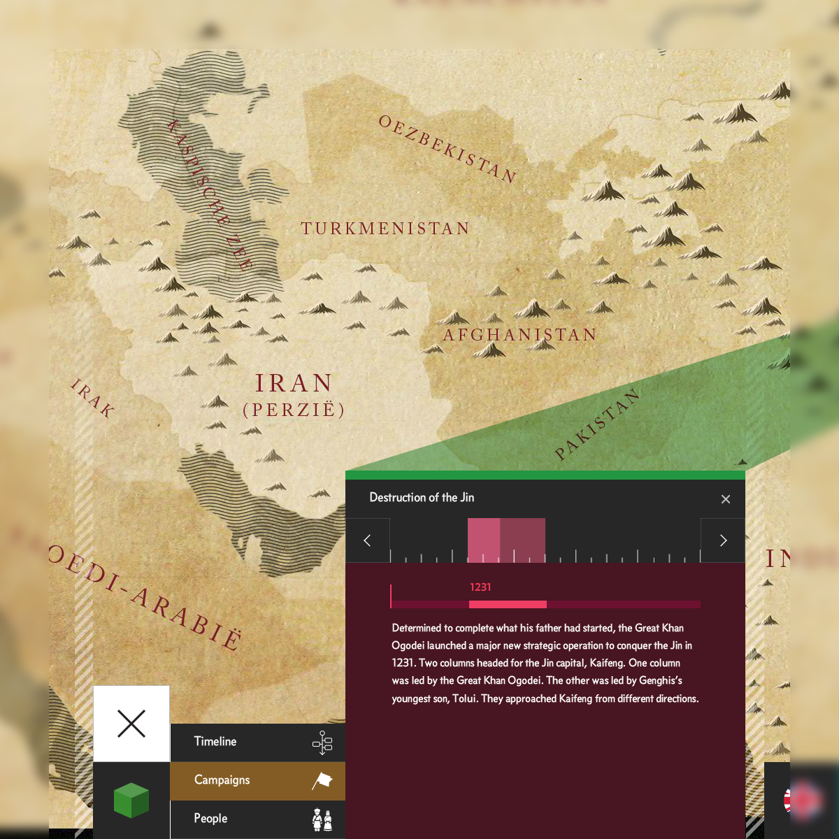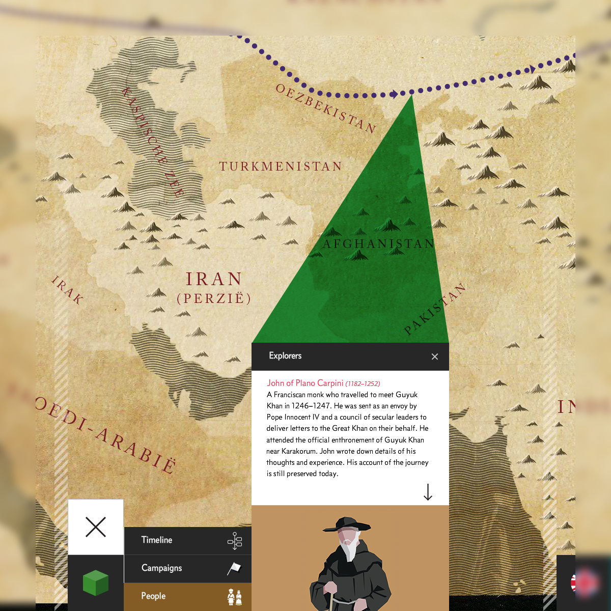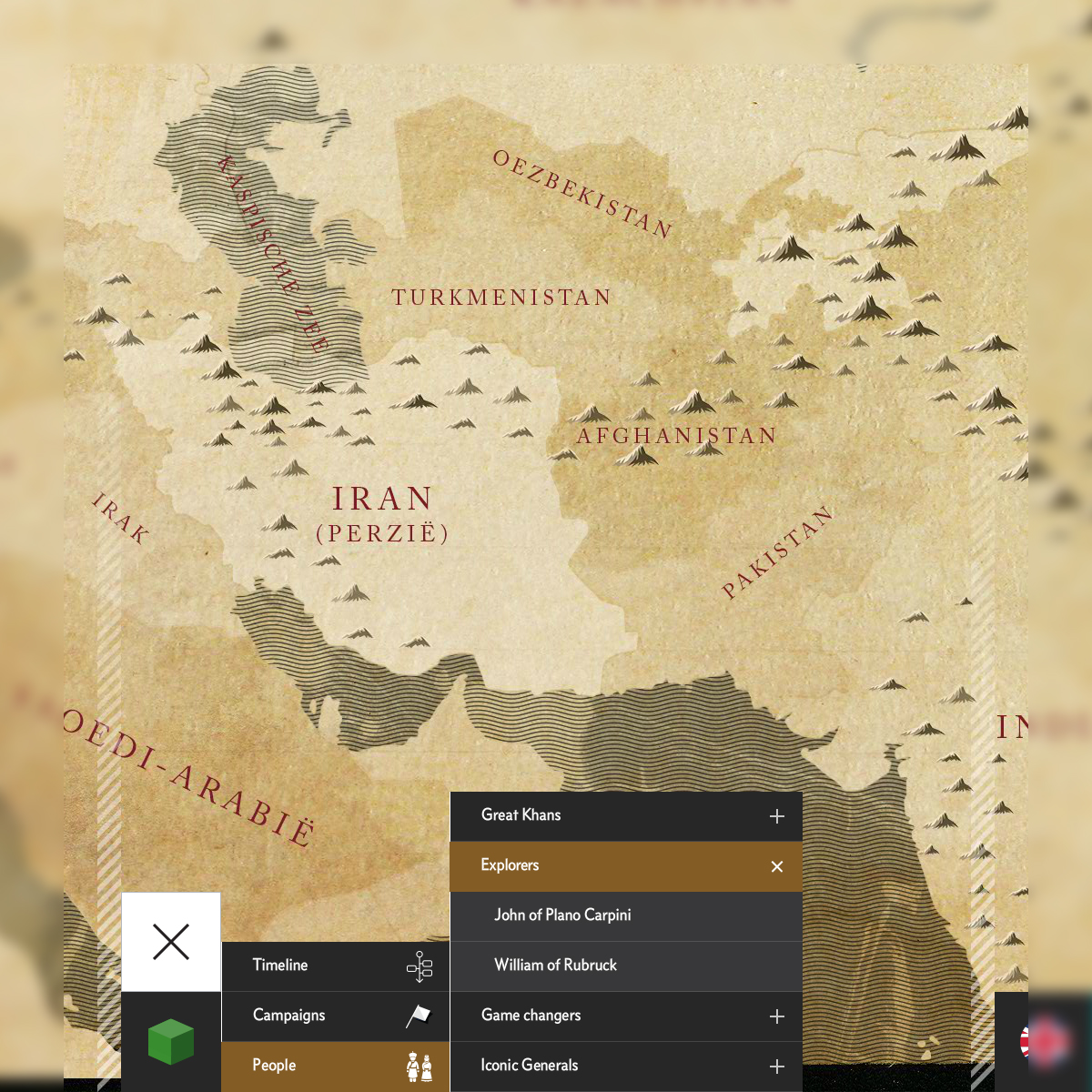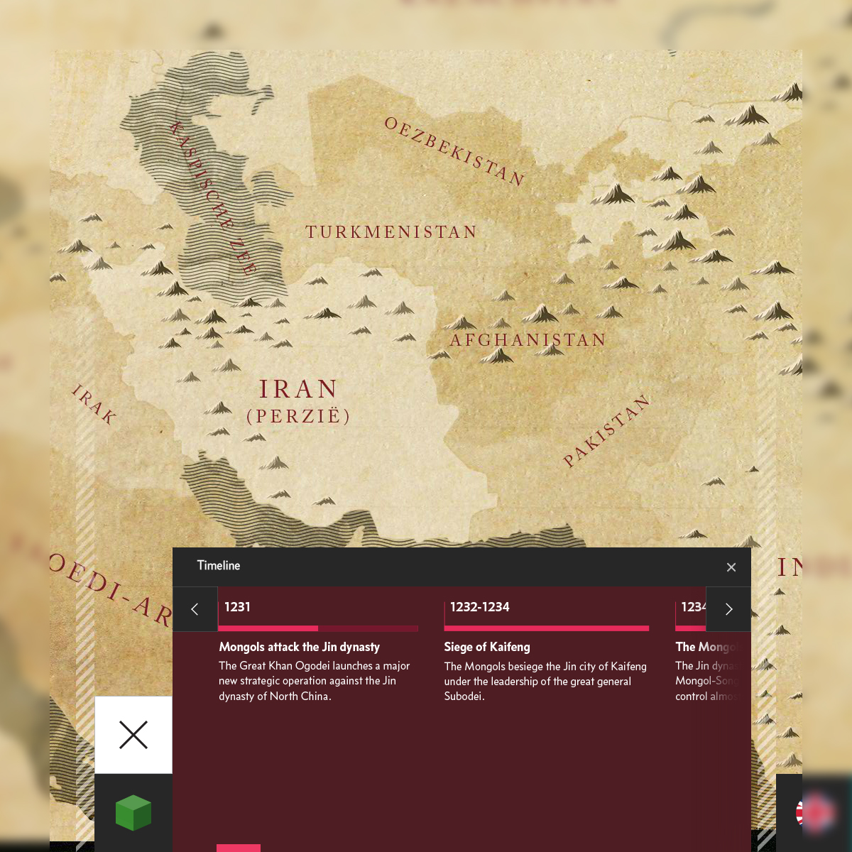 I developed two interactives for the touring exhibition 'Genghis: Rise of the Mongol Khans', which first opened in 2017 at the National Military Museum, Netherlands.