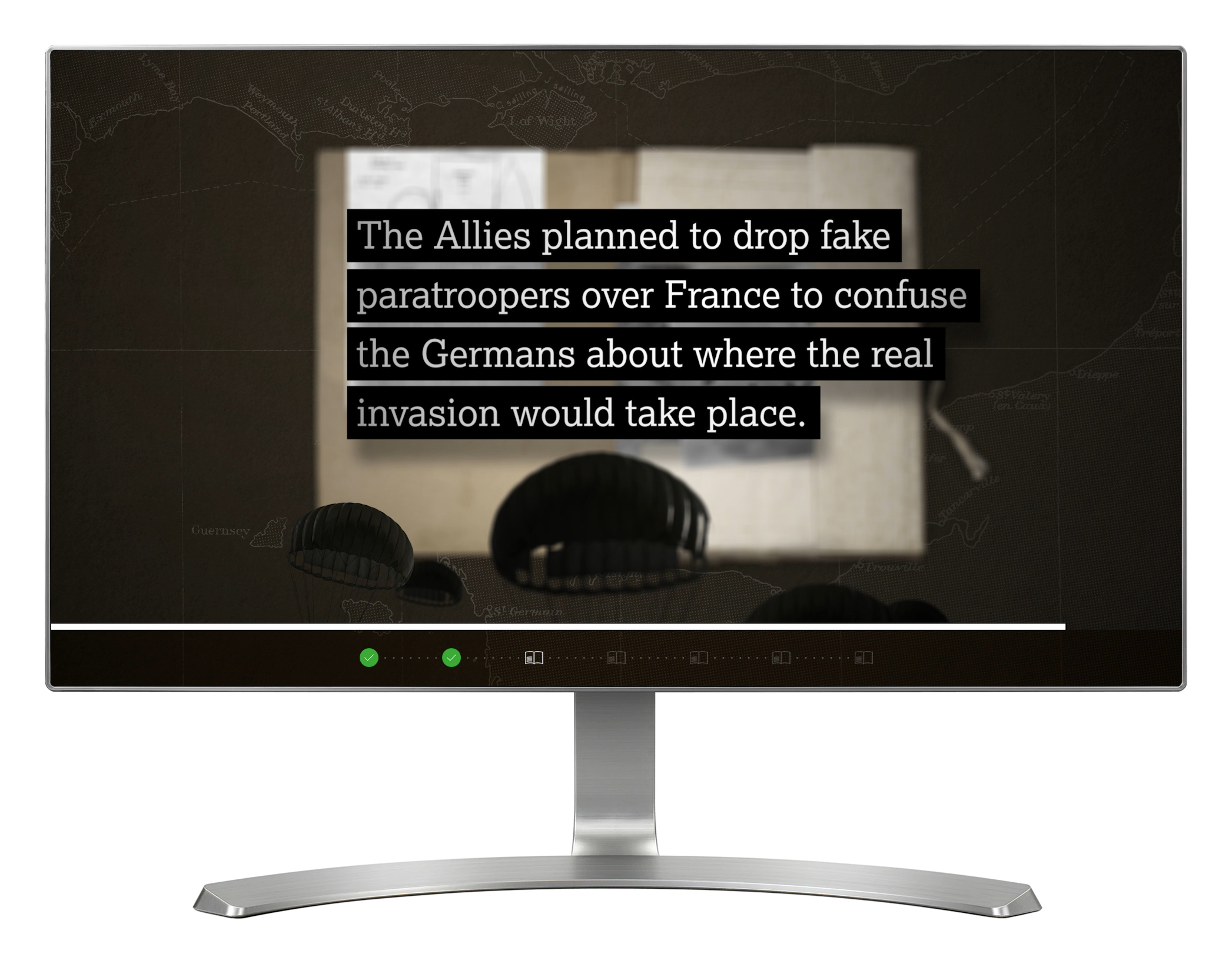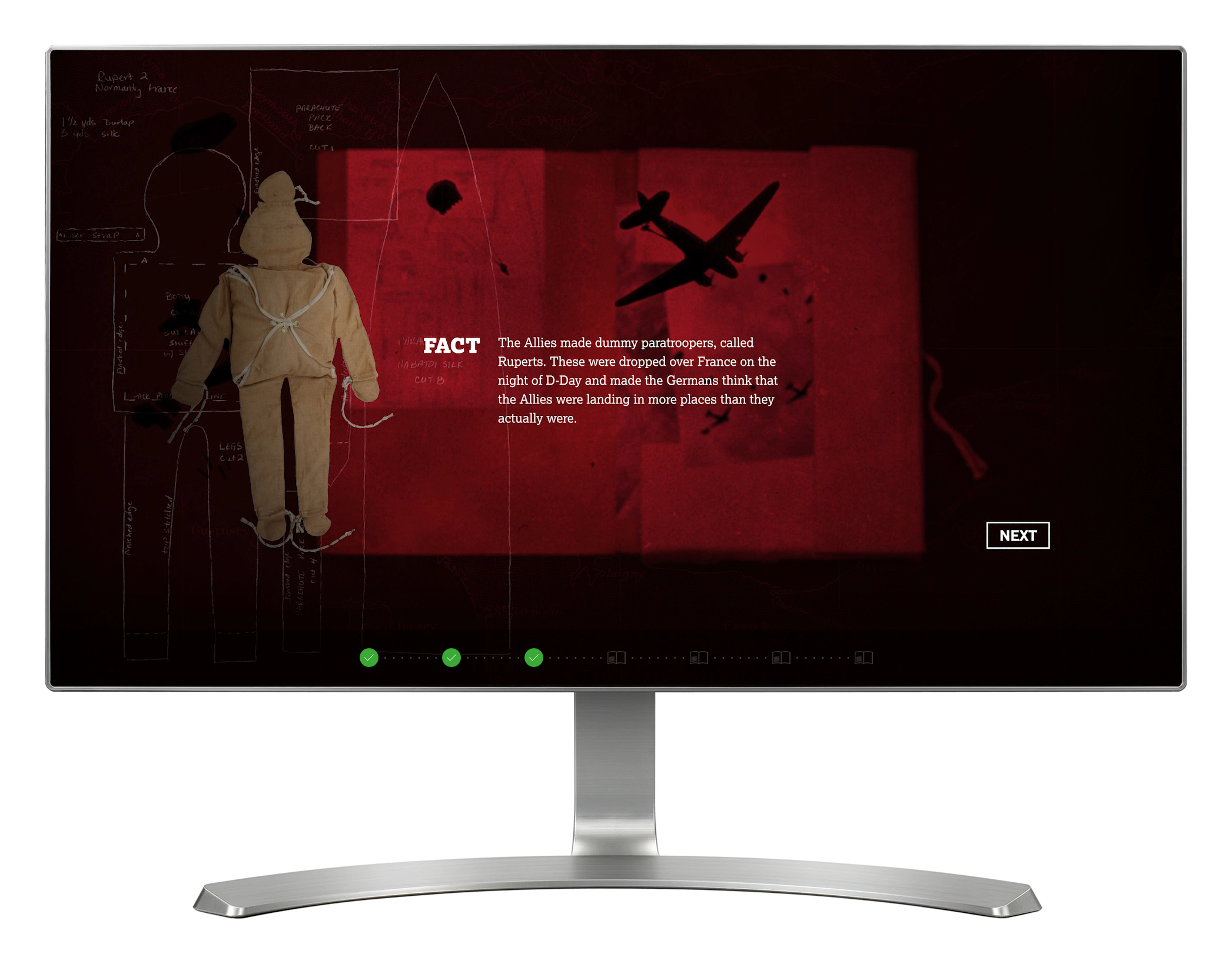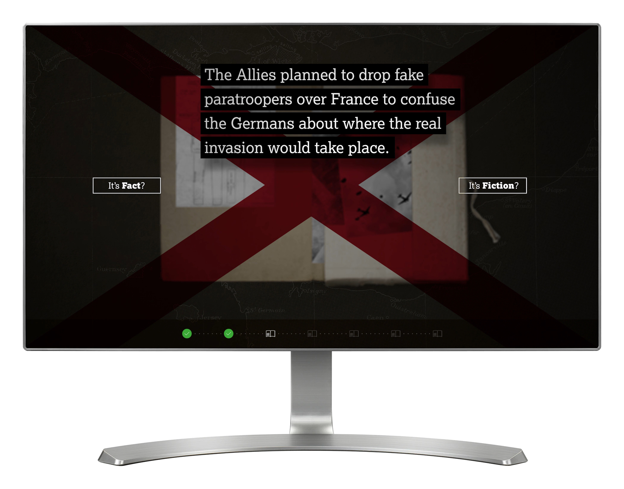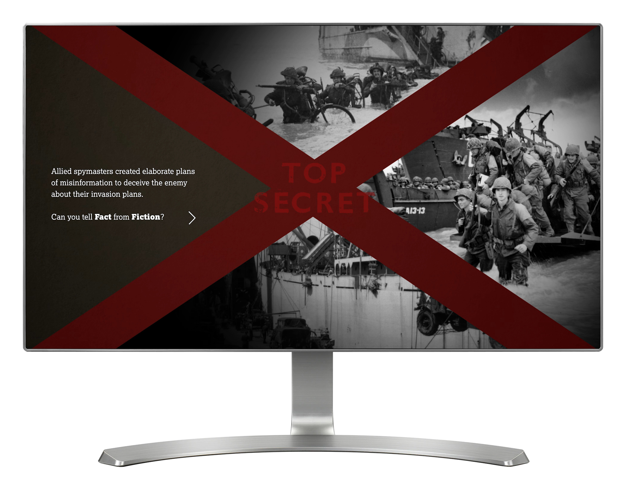 In 'Allied Deception', visitors are presented with a range of quirky factoids about D-Day, each one a short animated sequence. Visitors have to decide whether each one is fact or fiction.