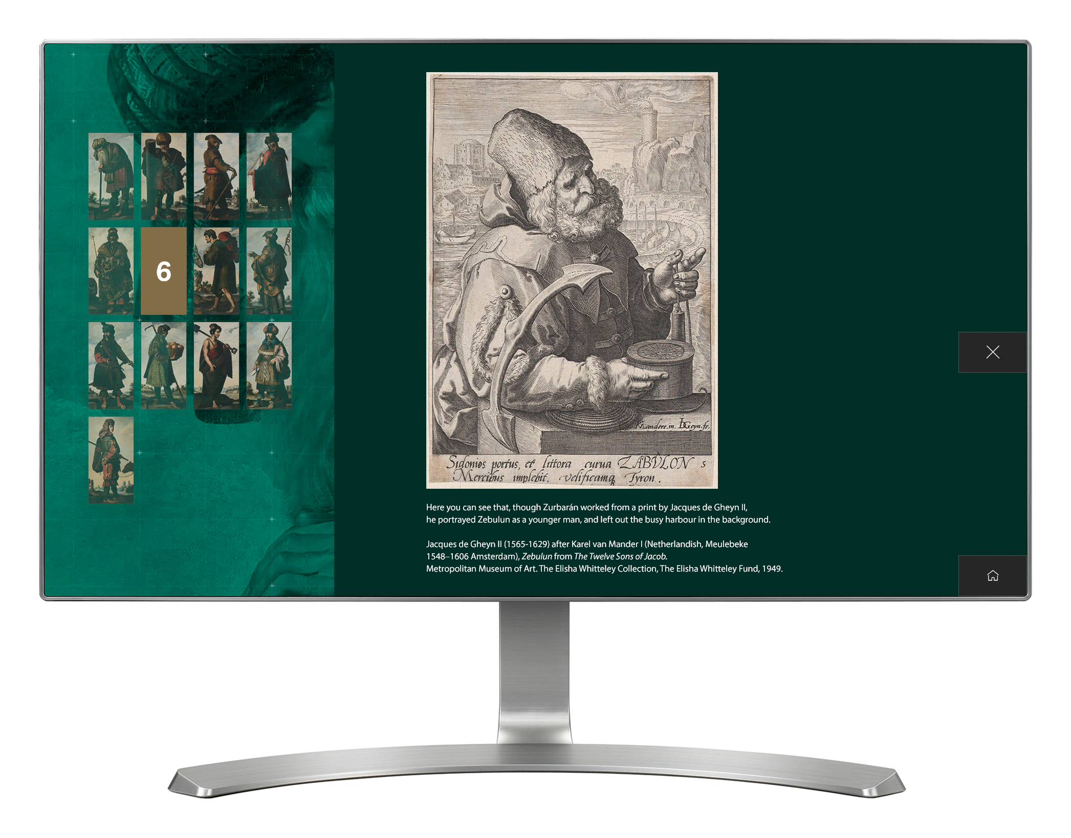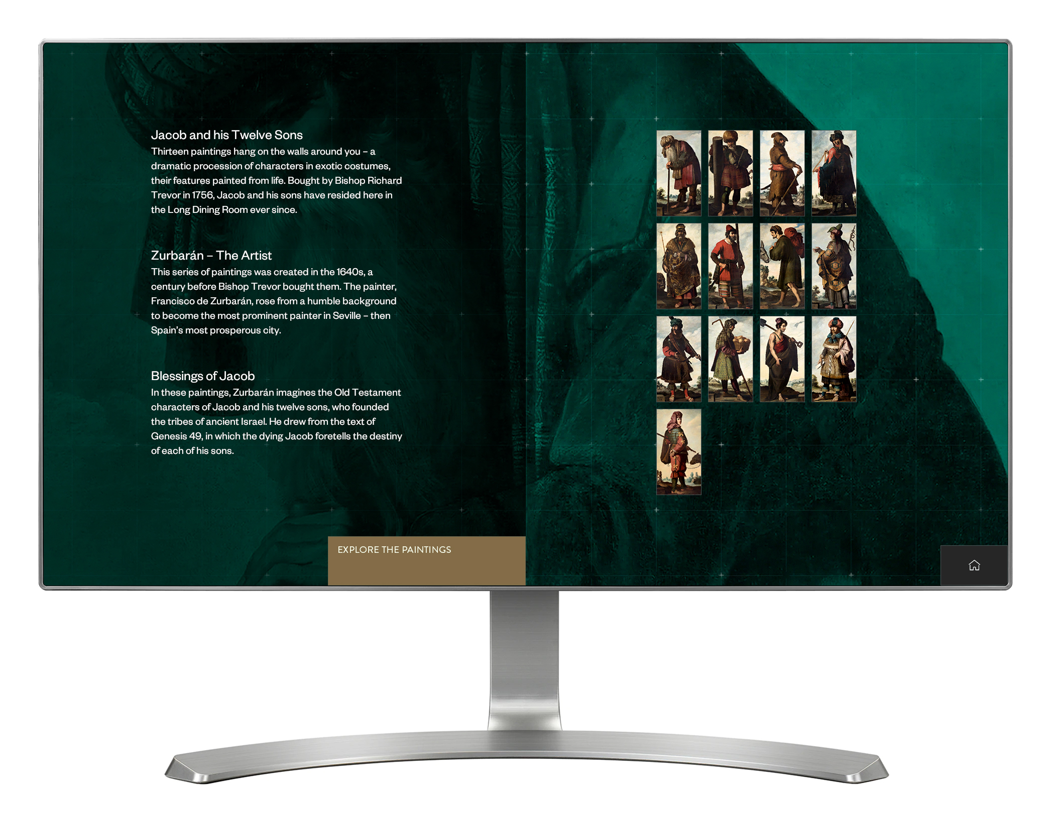 Auckland Castle has been home to the 13 life-sized paintings by Francisco de Zurbarán, known collectively as 'Jacob and his Twelve Sons', since 1756. The paintings hang in the Long Dining Room at the castle, and are now accompanied by this interactive touch screen installation.